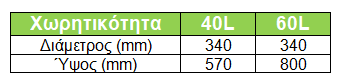 - Χωρητικότητα: 40L & 60L.