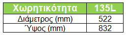 - Χωρητικότητα: 135L.