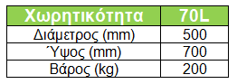 - Χωρητικότητα: 70L.