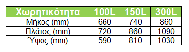 - Χωρητικότητα: 100L, 150L & 450L.