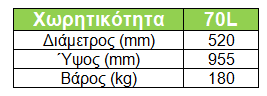 - Χωρητικότητα: 70L.
