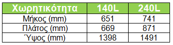 - Χωρητικότητα: 140L & 240L.