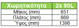 - Χωρητικότητα: 2x 90L.
