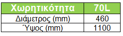 - Χωρητικότητα: 70L.